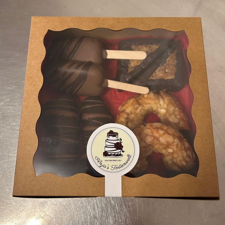 Boxen mit Nussecken oder Pralinen.